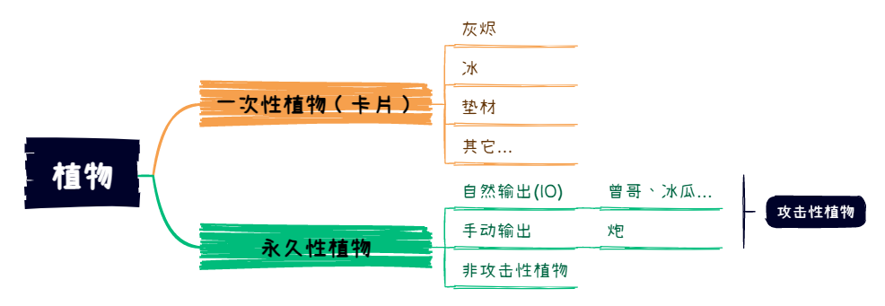 上文里,我们谈到植物可以分为卡、炮、IO三类。