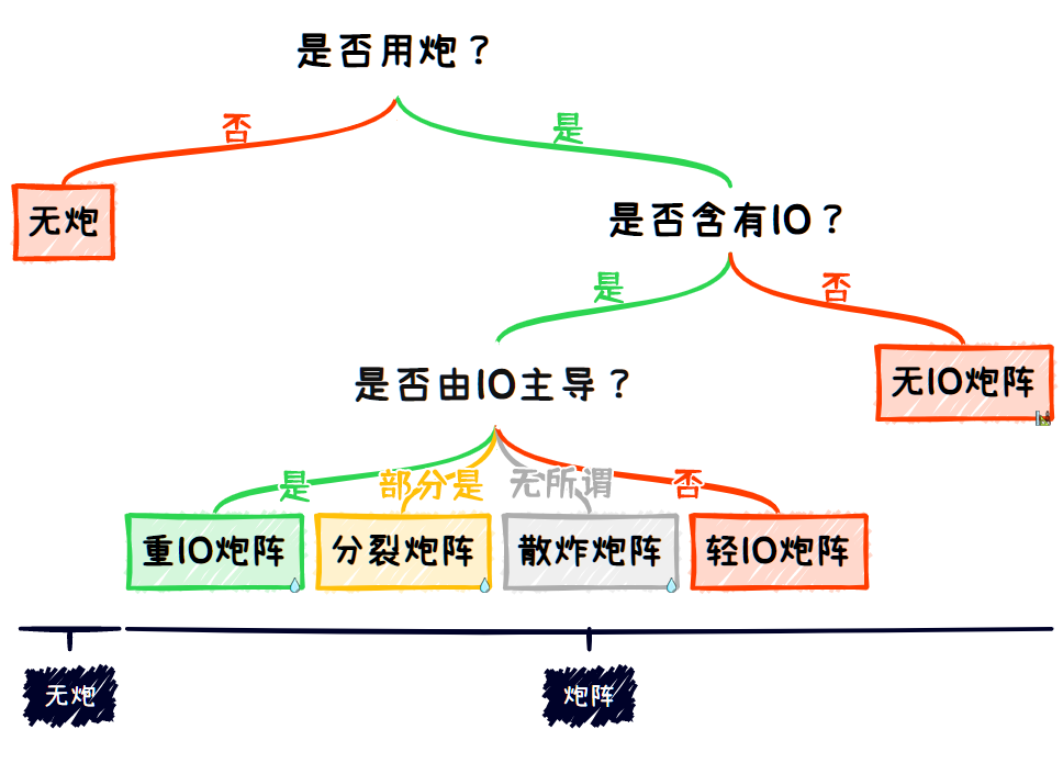 既然大部分阵都要用卡,我们就可以重点关注炮和IO的占比,作为阵型分类的准绳。